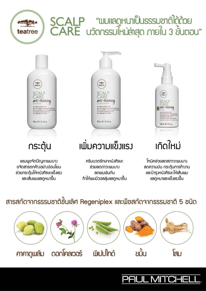 จำหน่าย Tea Tree Anti-thinning Scalp Care แชมพู ครีมนวด และ โทนิคใส่ผม ของ Paul Mitchell และ ออกแบบทรงผม โดยร้าน ร้านทำผม Hair & Beauty by ICT